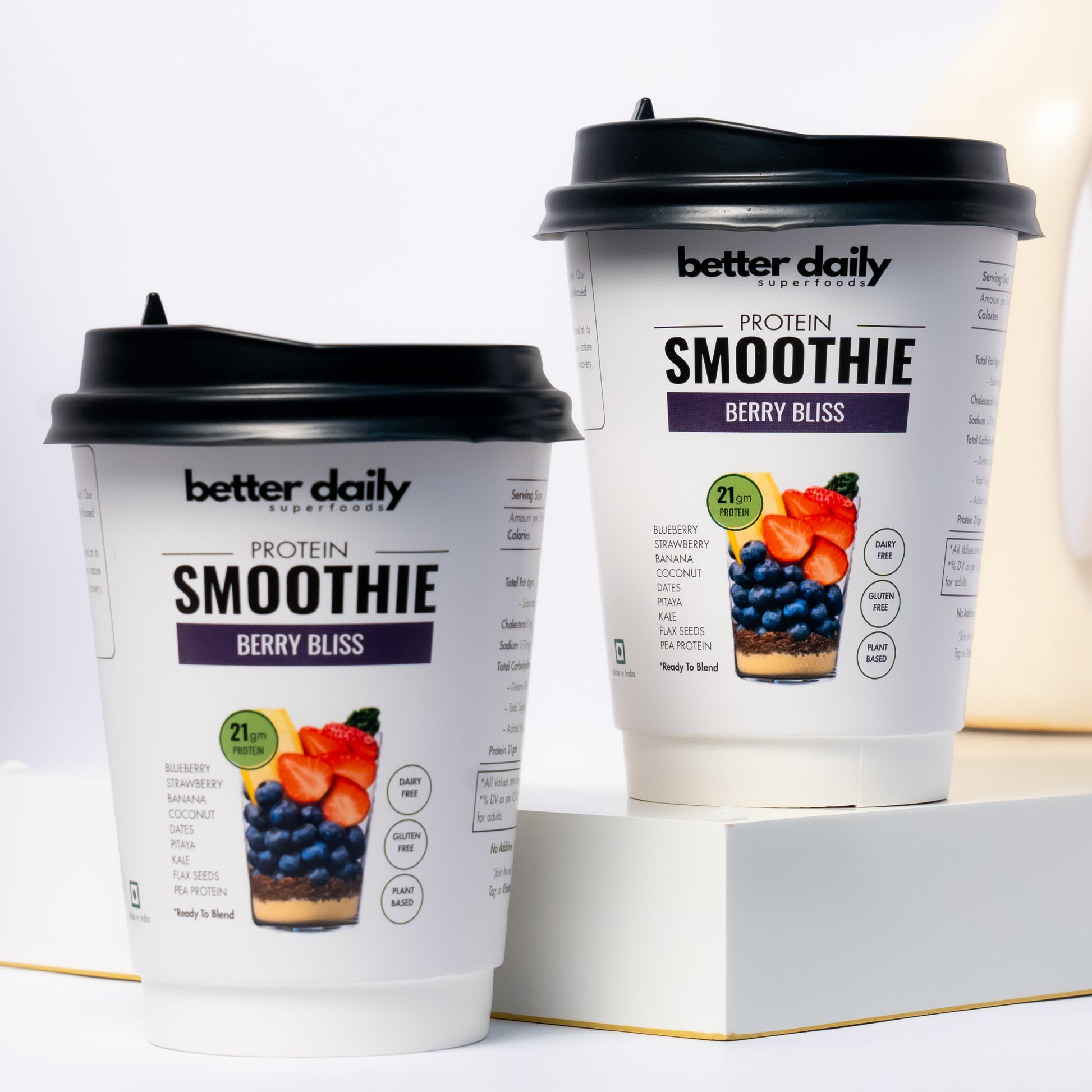 Fuel your day with our ready-to-blend protein smoothie - the perfect breakfast replacement, post-workout recovery, or answer to those evening hunger pangs—no added sugar. No Prep. No Mess. Just Consistency made easy. Because your body deserves Real food. Made with Real fruits and Veggies.
