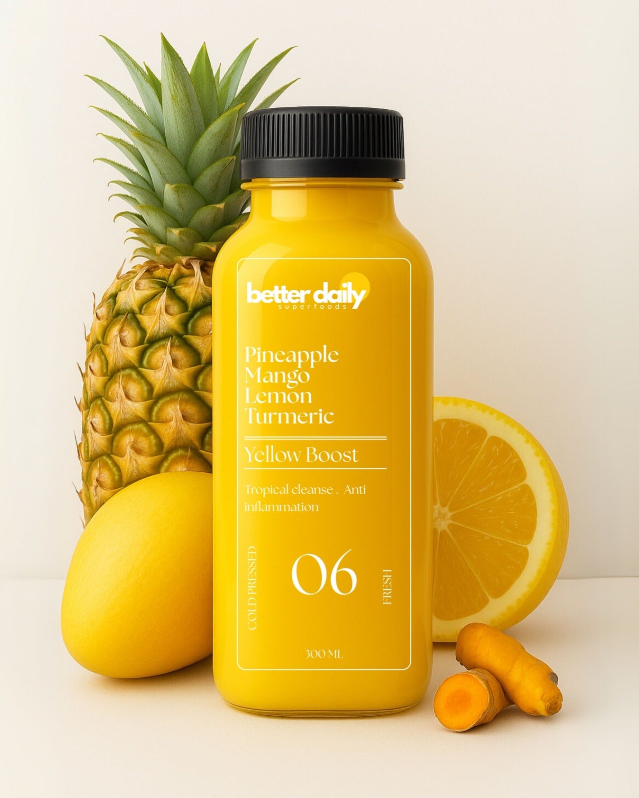 Pineapple, Papaya, Lemon, Turmeric, Ginger, Black Pepper, Water.